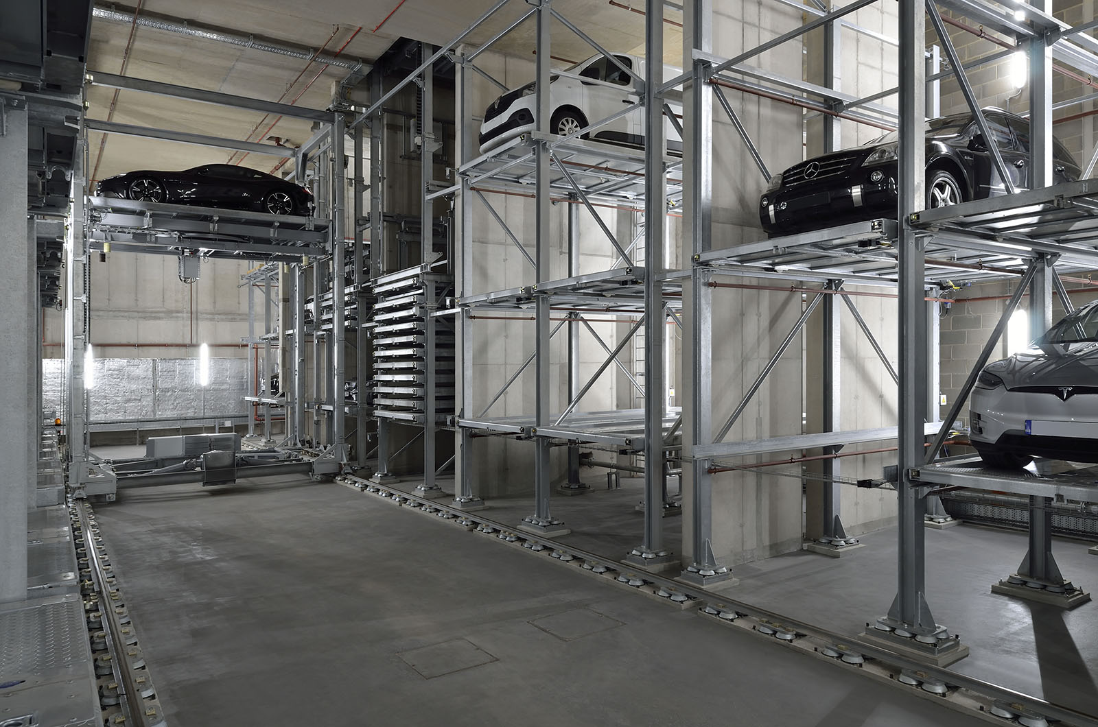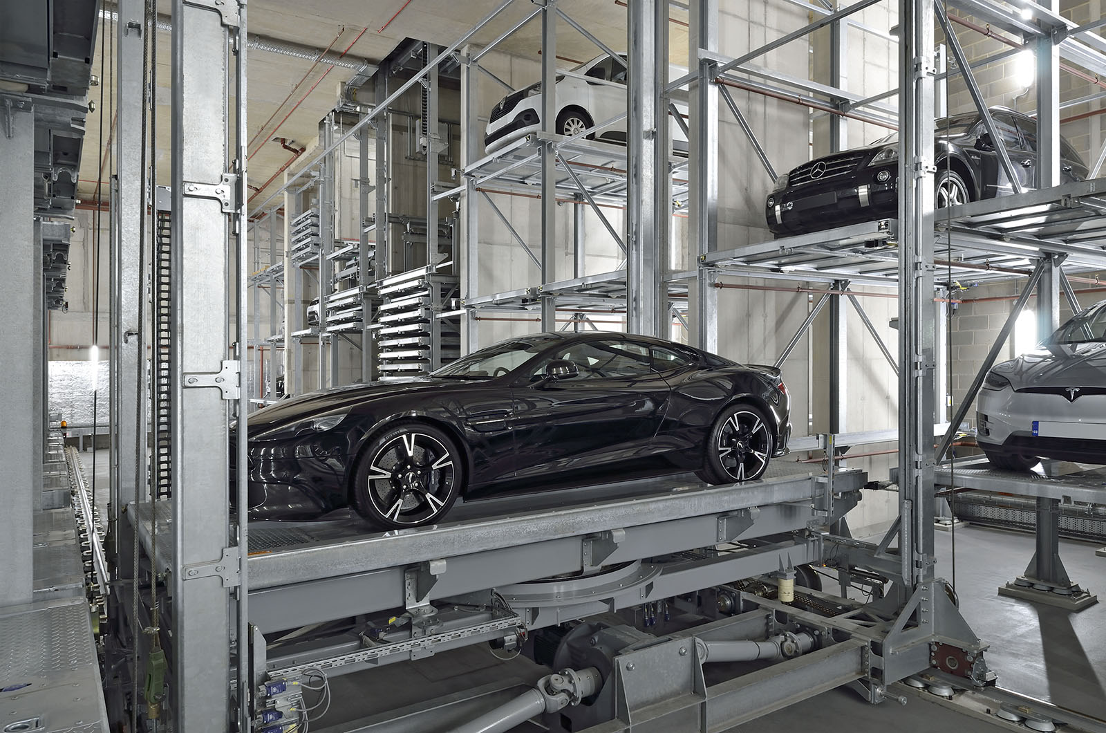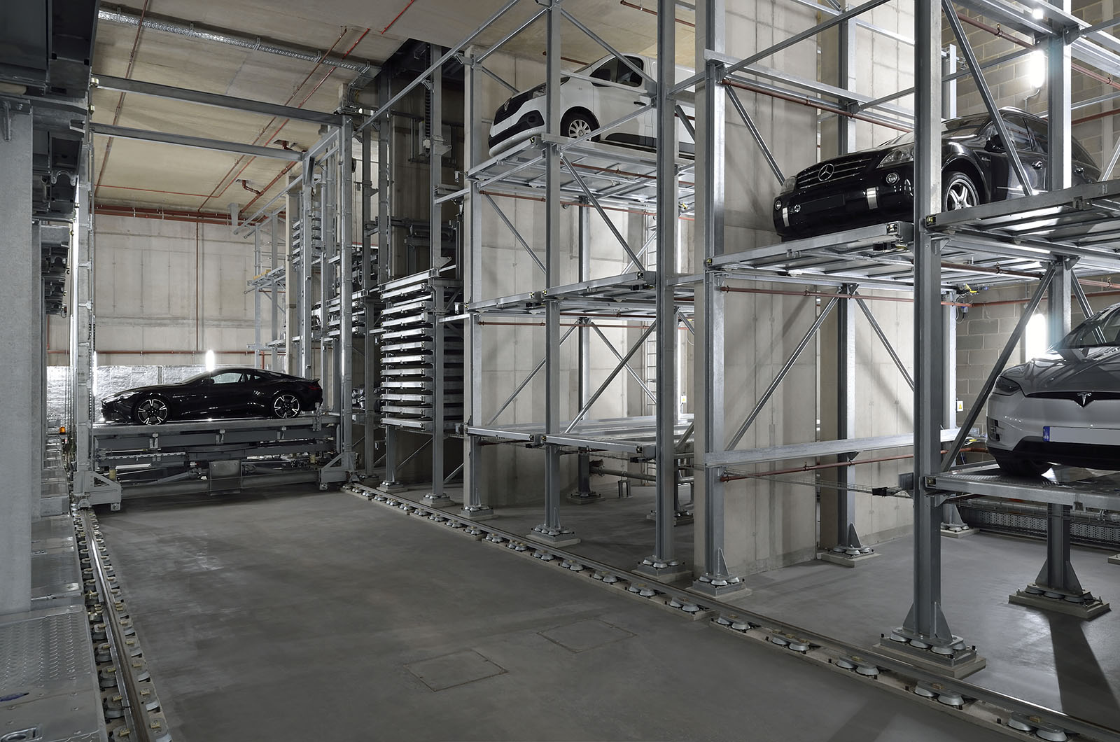 This extraordinary building complex has been developed for high-end apartments and the most exclusive commercial spaces, including Facebook's new headquarters. With 79 vehicles including charging stations for electric vehicles, it is one of the largest of its kind in the UK. Very fast access times are made possible by two entry and exit cabins, which like the system itself - are designed large enough to accommodate small transport vehicles. An integrated turning system ensures that the vehicles are conveniently positioned in the cabin in the direction of the exit when parked.