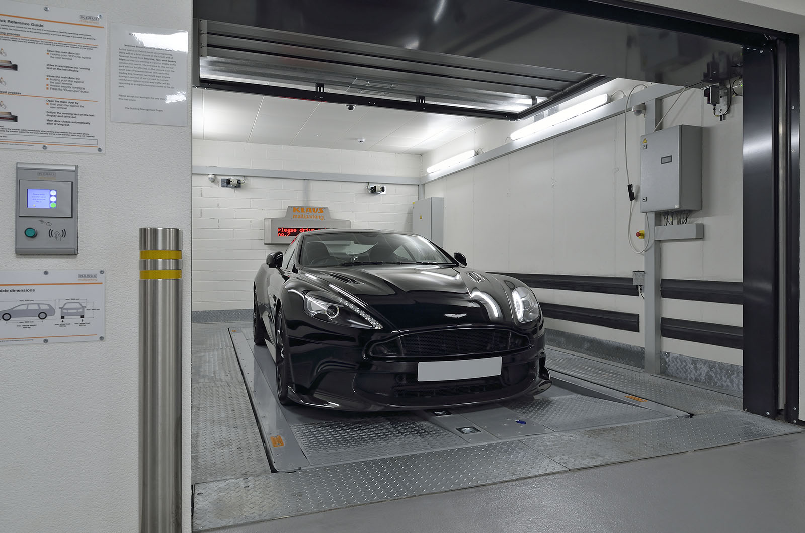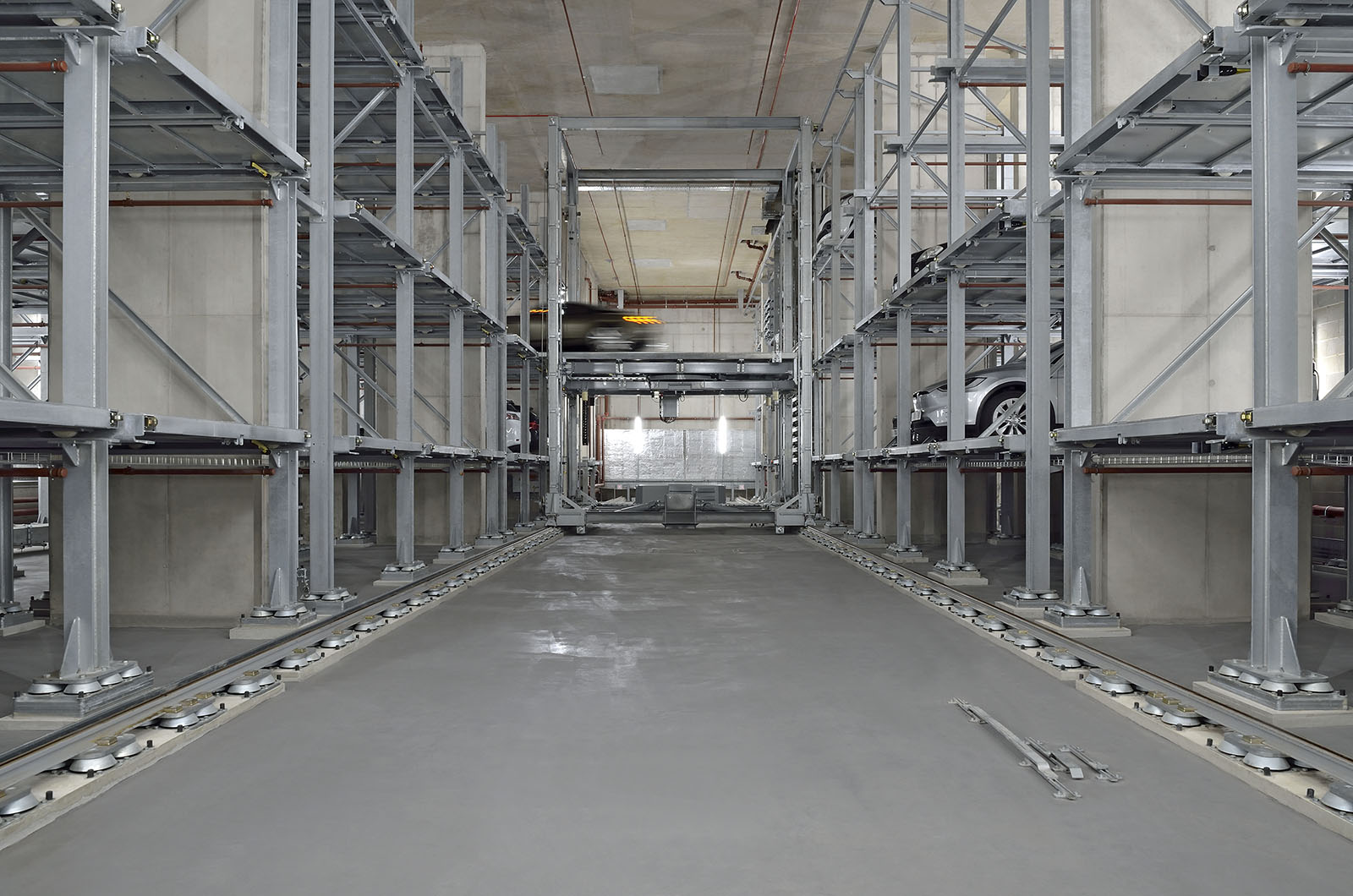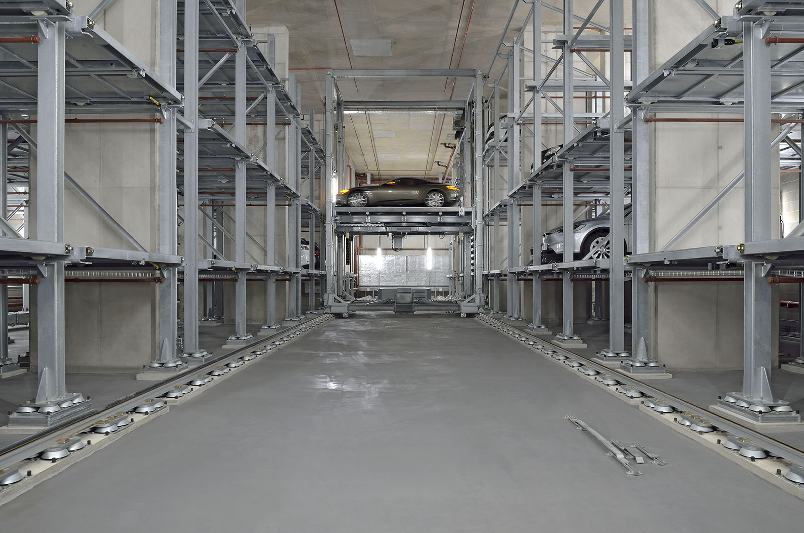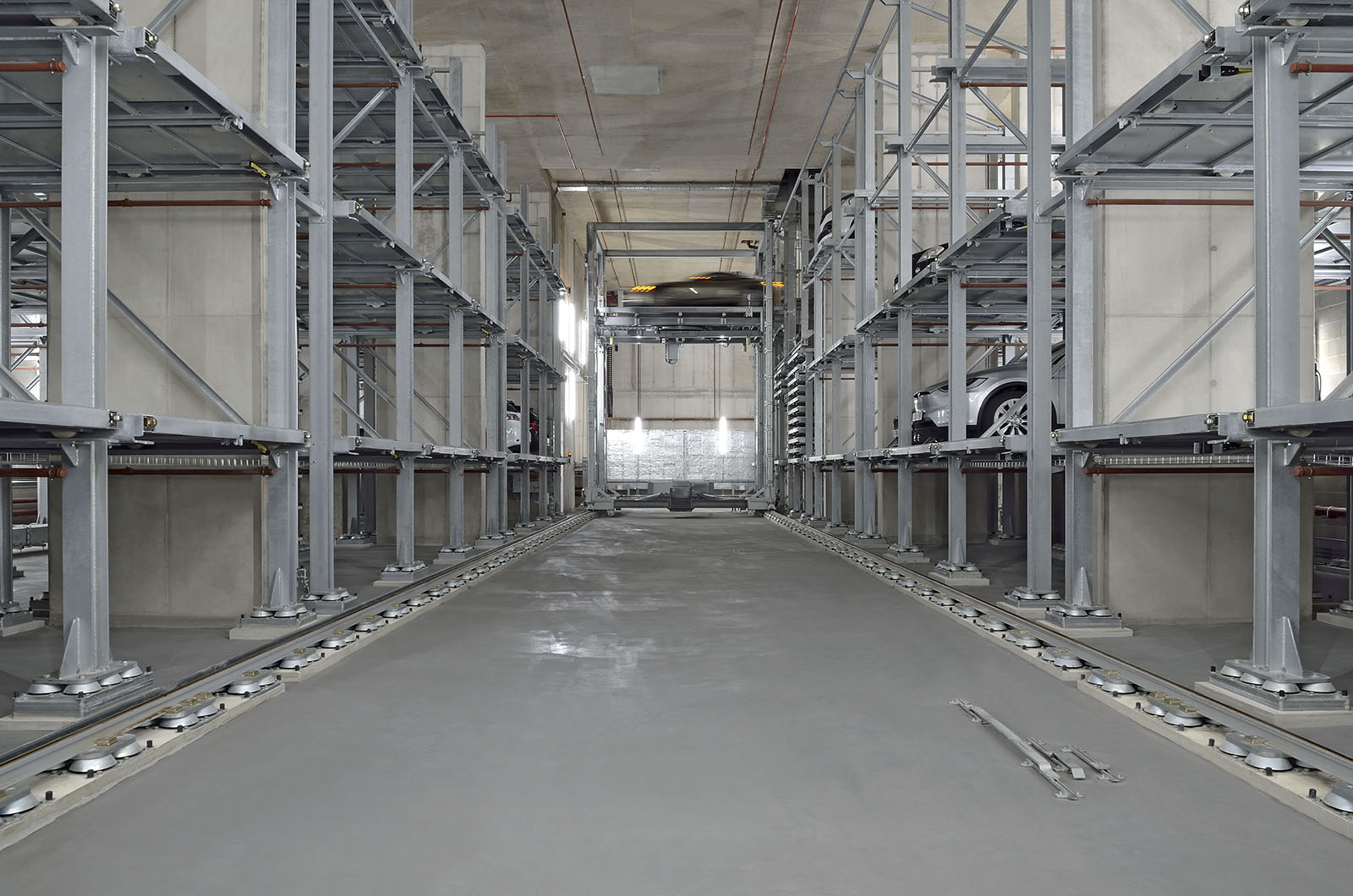 This extraordinary building complex has been developed for high-end apartments and the most exclusive commercial spaces, including Facebook's new headquarters. With 79 vehicles including charging stations for electric vehicles, it is one of the largest of its kind in the UK. Very fast access times are made possible by two entry and exit cabins, which like the system itself - are designed large enough to accommodate small transport vehicles. An integrated turning system ensures that the vehicles are conveniently positioned in the cabin in the direction of the exit when parked.